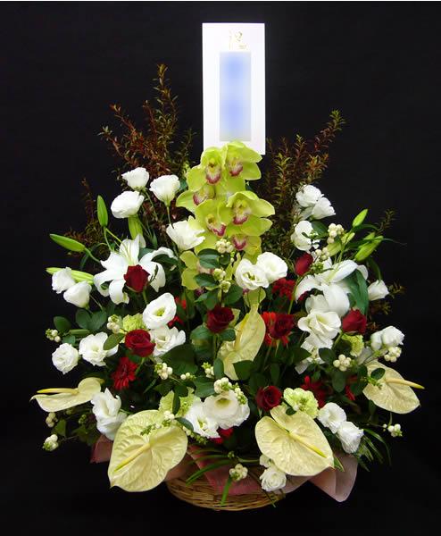 9月はいろいろとイベントが多いですが、本日は大安なのでお店のオープンや展示会などいろいろあるようですね。こちらのお花は呉服屋さんの展示会のお祝いにお届けいたしました。白のトルコキキョウベースに赤バラを入れて、紅白にしてみました。