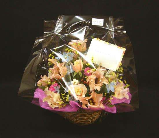 ご家族のみなさまからお母様のお誕生日のお祝いに。こちらはご予算3150円です。ピンク系のお花でお作りいたしました。ちょっと秋らしくバラの実も生けてみました。写真ではあんまりみえないかなー。