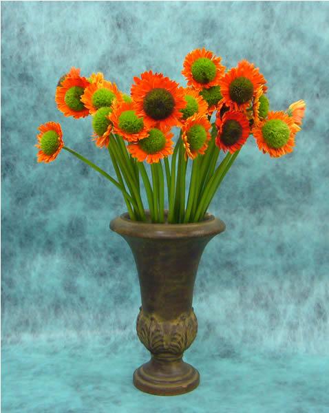 真ん中のグリーンが濃い方は朱赤のお花、淡いグリーンのほうはオレンジのお花のようです。似たような色ですけどね。