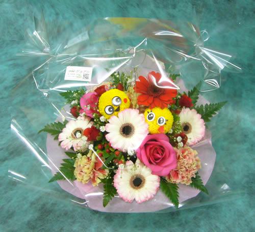 こちらは古希のお祝い用にご注文いただきました。お孫さんからのプレゼント用です。二人ともパッチリお目目のほうがいいとのご注文でした!ご本人が大好きな赤、ピンク系でつくりました〜。今日はホテルに皆さんでお泊りなのだとか。アレンジならお水の心配も要らなくて安心です。