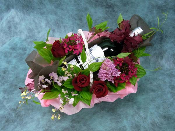 こちらはワインを添えたアレンジメントです。