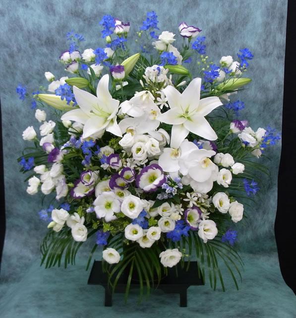 こちらのご注文は淡いブルーと紫を入れて、白ベースにアレンジとのご注文でお作り致しました。