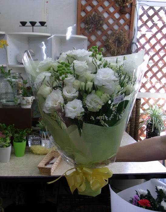 白がメインの花束のご注文をいただきました。