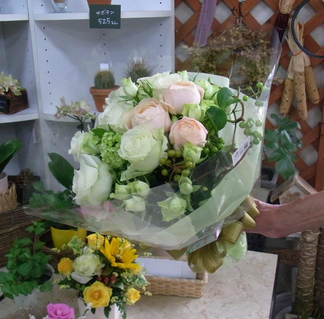 ▼白とグリーン系のブーケ風花束