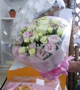 ピンク・オレンジ系のブーケのご注文と一緒にいただきました。淡い色合いでまとめました。