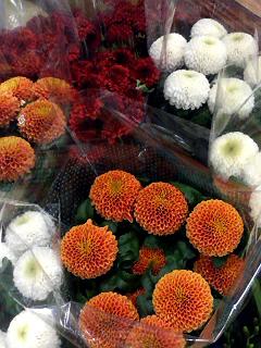 本日はピンポンマムが入荷していまーす。花鏡もちのお餅の部分の菊ですが、いろんな色があります。本日の入荷分は花鏡もちで使用するピンポンマムよりも一回り小さいタイプ。色鮮やかでフラワーアレンジメントに使用しても違和感があんまりないかも。