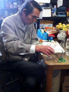 色ドレス用のブーケの製作風景です。今回のブーケはちょっと凝ったブーケなので葉っぱ形の土台を作りました。紅ツゲの葉をアクアグルーで貼り付けているところです。