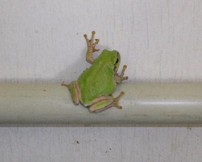 外から迷い込んできたようです。雨の気配を感じるのでしょうか、湿度が高くなるとなきだしますが、こんなにちいさいからだのどこから?と思うぐらいの大きな声で鳴くので、突然鳴きだすとドキッとします。しかし丸々太ってるなー。