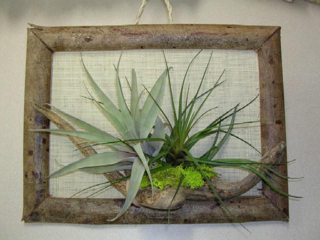 エアプランツの壁飾りです。水やりもほとんど心配要りません。肥料もやらなくても育ちます。最低5度は必要ですが、大抵のお宅の室内なら大丈夫ではないでしょうか。植物を置くスペースが無いというかたは、壁を植物のスペースにしてはいかが。