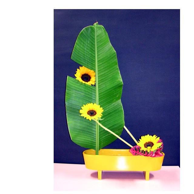 芭蕉の葉を使った生け花かなー。