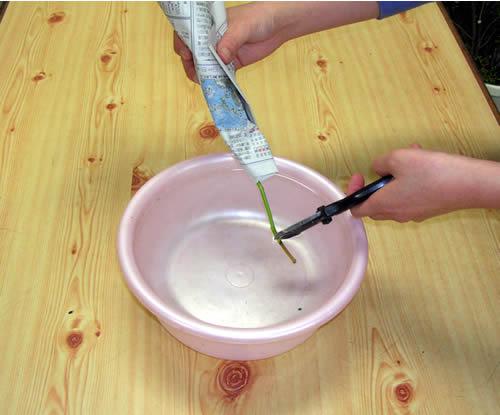 茎を水中で切ります。