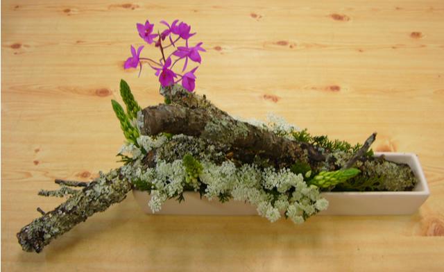梅の木のこけ木(ぼく)をぜいたくに使いました。