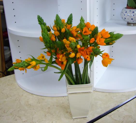 オレンジ色のオーニソガラムが入荷しました。1本210円です。