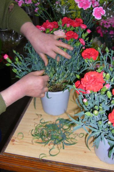 市場から仕入れたままだと葉が込み合っているところは、葉っぱが黄色くなってしまっていたりしますが、一鉢一鉢、きれいに取ります。