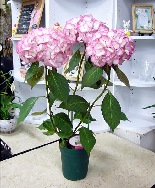 きれいなアジサイです。ピンクの縁取りがしてあるみたいです。背も高くてボリュームがあるのにお値段は2100円です。今は母の日と父の日の境にあるのでお買い得のお値段で入荷いたしました。プレゼント用にいかがですか。