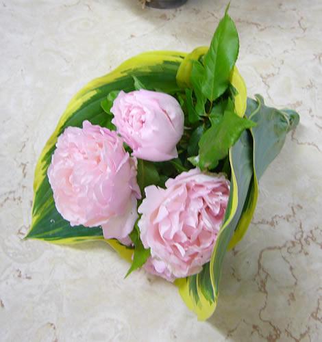 グリーンでラッピング。素敵ですね。雑誌でもよく見かけます。でもグリーンは意外と高いので、その分お花を入れるか悩むところです。写真はトルコキキョウをくるんで見ました。お庭に咲いたバラの花をお友達にプレゼントなんて場合もさりげなくていいですね。