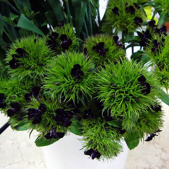 こちらも今日入荷したなでしこです。市場の伝表にナデシコとしか書いていないので名前はわかりません。なんだか毛玉みたい。黒いお花がところどころに咲いています。シックなアレンジにぴったりです。