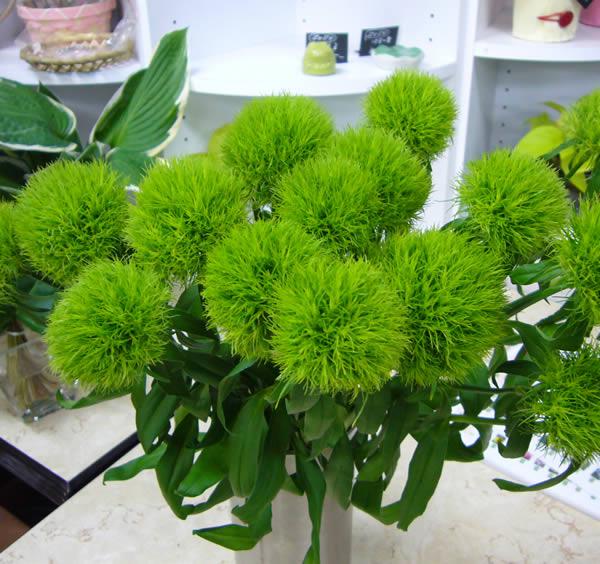マリモみたいですが、葉っぱを見るとやっぱりナデシコ。すっかりおなじみになりましたね。グリーンのひとつとしてアレンジのアクセントにするとかわいいです。とっても長持ちするのでこの時期は重宝します。