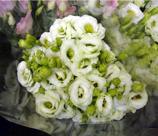 グリーン系のトルコキキョウ入荷しました。写真だとクリーム色にみえますねー。実物は淡いグリーンのお花です。花型がとてもきれいです。