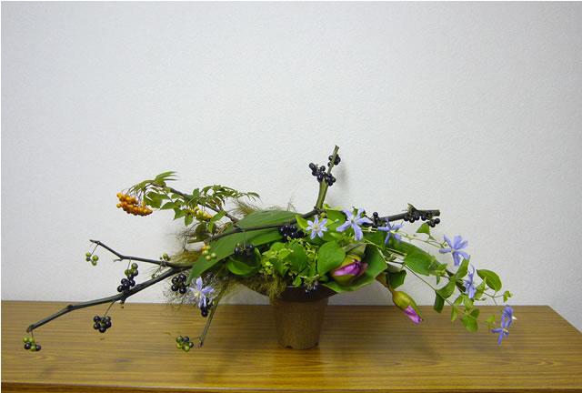 今日は月一回のアレンジメント教室に行きました。今日はストゥルクトゥアのなかでも層状に作るものです。間にオアシスを挟みながら層状にお花を生けていきます。今日はきれいな睡蓮が入荷したのでさっそく使ってみました。秋と夏の花材を層状に重ねてみたつもり。言わないとわかんないねー。