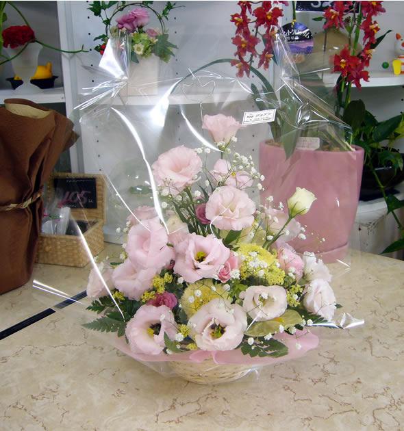 お友達の結婚のお祝い用にとご注文をいただきました。本日は淡い色合いのお花がいろいろ入荷していたので、淡い色合いのアレンジメントにしてみました。トルコキキョウのピンクがとても優しい色です。