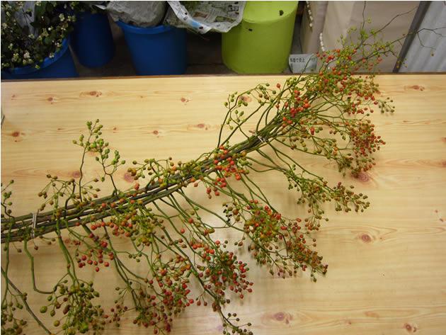長くて立派なノバラの実が入荷しました。前回入荷したときより実が色づいてますすねー。こういういい花材がうれしくなります。
