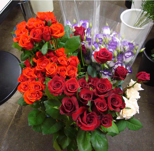 連休中は何かとイベントが多いですね。贈り物用に赤バラ入荷しております。もともとブーケと両親用の花束のご注文を連休中にいただいていたのでちょっと多めに仕入れました。赤バラのローテローゼと朱赤のバラ(ごめんなさいなまえわかりません)入荷いたしました。