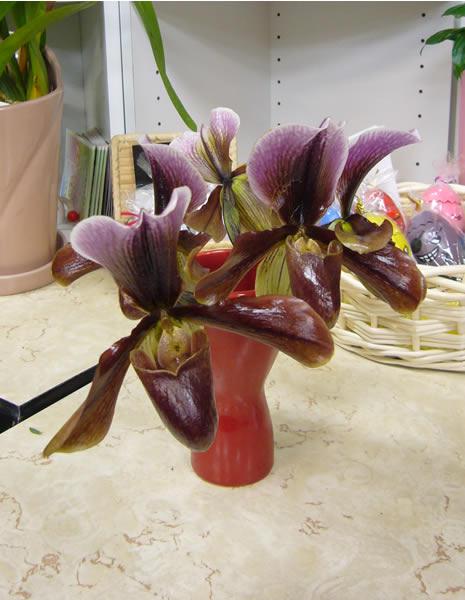 こちらは切花です。今回入荷したお花は茶色ですねー。本当にスリッパっぽい。