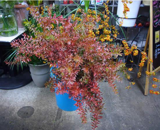 こちらのユキヤナギは本物の紅葉ではなくペイントしてあります。本当に紅葉したものは水揚げが悪いしすぐに散ってしまいます。ということで紅葉風にペイントしたものが市場に出回っております。なかなかきれいです。