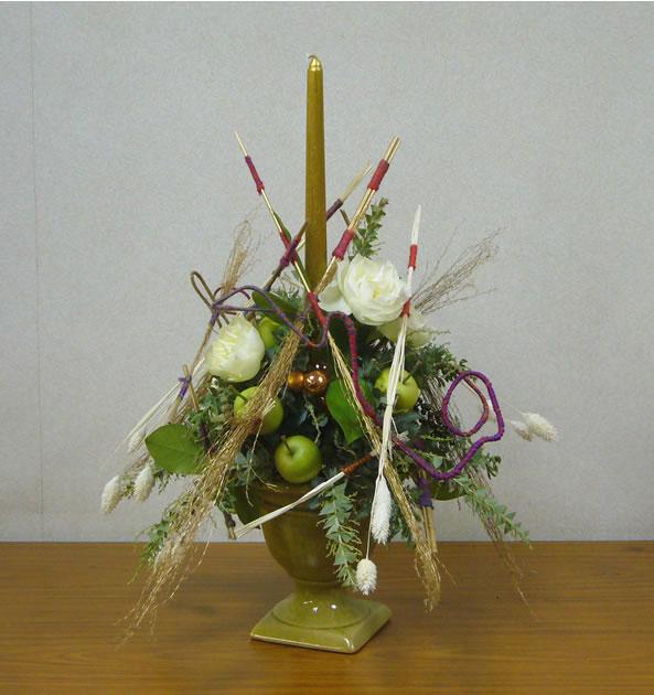 今日は林株式会社さんでお稽古の日。今日は『ユーバーシュナイドゥンゲンスシュトゥルクトゥア』。なんのことやら・・・ですが、要するに交差と構造がテーマ。名前がドイツ語なのでピンと来ません。でも今日は今年最後の教室なのでクリスマスがテーマ。クリスマスのアレンジは作っててとっても楽しいですねー。