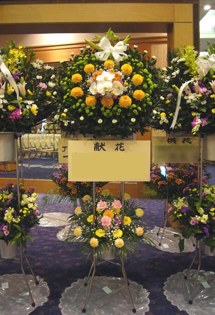 今日はピンポン菊を使って久々のまんまるスタンド花。真ん中のコチョウランが効いてます。