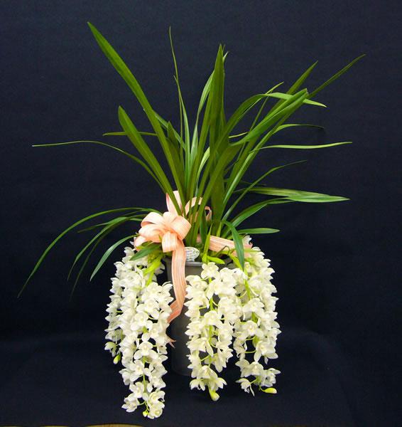 こちらは本日オープンの事務所にお祝いのお花としてお届けしました。シンビジューム『アイスキャスケード』です。机についてしまうほど花がたくさん咲いています。まだつぼみもあるし、しばらく楽しんでいただけそうですねー。しかしいったい何輪咲いているんでしょう。