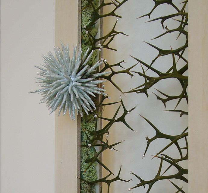 白いウニの拡大です。パールビーズがトゲの一部につけてありますね。