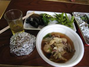 芋煮会の芋煮は里芋、牛肉、ゴボウ、ネギ、舞茸、コンニャク・・が入っていたようです!