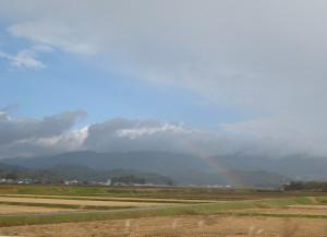 今日、私の子供達と一緒に尾花沢にラーメンを食べに行って来ました、その帰り空に虹を見つけて帰って来ました。この時期にはどうだろうか、私はあまり見た事がないようだから今日のテーマにあげます。太陽から来る光が春の頃と比べたら少ないはずです・・・・。
