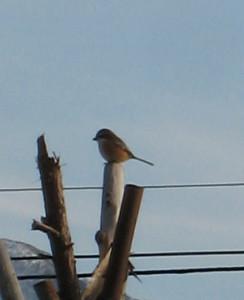 モズが前の木で鳴いていました、なかなか格好のいい鳥です。腹は少し茶色だし、スズメとは違いますね!モズの歌を作った作詞家はダレでしょうか?
