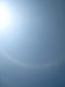 今日の太陽の周りに丸い円のような雲が出ていました。