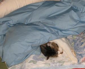 我が家のネコの蘭丸が娘と寝ています、まるであかちゃんのようです!