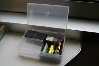 ダイソーで買ったケースの中に単三×3本の電池ボックスを入れ、別の100均で買ったUSB延長ケーブルを切断、メス側をバラして電池ボックスと直結し、ロガーもケースの中に入れて一体化。 (こんな面倒な事するのなら、普通の電池仕様のロガー買ったほうがいいですね。) とりあえず、これなら電流は130mA程度で、10時間は行けると思うけど・・・ 本当なら4本の電池ボックスを使用し、NiMH仕様にしたかったのだけど、田舎のホームセンターに平型の4本の電池ボックスがなかったのと、NiMH電池を使用する場合はショート対策考えないといけなかったので、とりあえずこんな形にしてます。 追加> あまり容量が多くないという「トライアル」の格安アルカリ電池で試してみたら、12時間連続ログ出来てます。 この位だとちょっとした旅にはなんとか対応できそうです。 追加2> アルカリ電池で使用する場合、あえて4本にする必要はないと思います。 というのも・・・「消費電流がいやに大きい」の書き込み内に書いたように、電圧変えても消費電流があまり変わらないからです。 つまり必要以上に電圧上げてもエネルギー効率が低下するだけですので、もったいないです。 ただしNiMH電池の場合は、3本では電圧が不足する(仕様外)ので、4本必要かと思います。 |