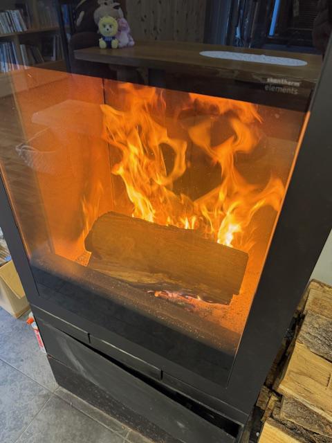 徐々に気温が下がってきたので、薪ストーブに火を入れました。
