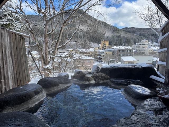 小野川温泉の冬の景色を眺められる露天風呂、冬も変わらずご利用できますので、ぜひ、ゆっくり入浴しにいらしてください。