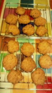 180℃に予熱したオーブンで、180℃で17〜20分、こんがりするまで焼き、網の上で冷ます。