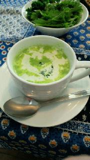 レッスンのスープは紀江ちゃんのクレソンで米粉ポタージュにしました。