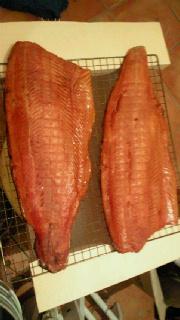 三日間漬け込み、スモークして、さらに寒風干しして、塩気が馴染んだら、出来上がり(^o^)v