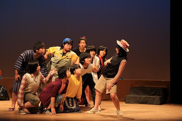 あれっ?九里劇部そんなにいたの?と言われながら「なんとかやってやろうじゃないの!」と取り組んだ劇でしたが、13人の演劇部員+顧問1人で、やってもやっても準備が終わらない。本番に間に合うかとハラハラし通しでした。でも、演劇部員13人。3年生から1年生までよく頑張った。気になるところもいっぱいあるけれど、それを越えてお客さんに感じ取ってもらえるものがあるようにと懸命に2時間のステージを歌い踊り走りぬきました。