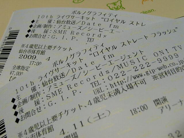 ポルノグラフィティ 10thライヴサーキット『ロイヤルストレートフラッシュ』のチケットをFC先行予約でGetしましたッ!!!