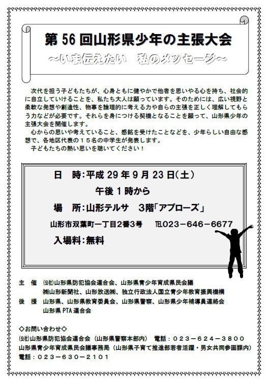 今年度も、山形県少年の主張大会が下記のとおり開催されます。