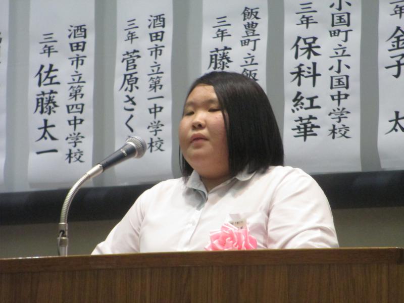 去る9月24日に開催された第57回山形県少年の主張大会で、最優秀賞に輝いた天童市立第三中学校3年岩淵 礼姫さんが、北海道・東北ブロック代表に選出され、第40回少年の主張全国大会で発表することとなりました。