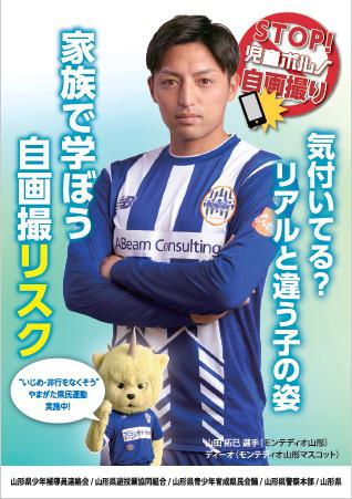 山形県青少年育成県民会議では、山形県少年補導連絡会、山形県遊技業協同組合、山形県警察本部と連携し、モンテディオ山形の選手及びマスコットを起用した自画撮り被害防止啓発のポケットティッシュを作成いたしました。