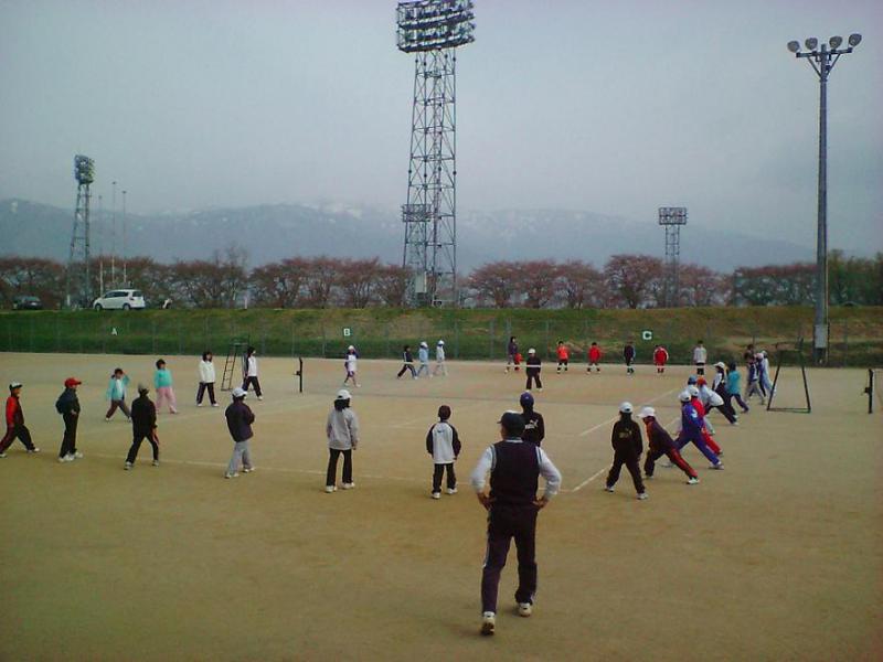 ゴールデンウィークにもかかわらず、いよいいよ本格的に練習が始まりました。来週からは土曜日以外も水曜日の自主練習も行います。まずは5月の大会に向けて皆さんがんばりましょう。ということで準備運動から・・・